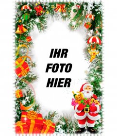 Weihnachtspostkarte, mit Ihren Fotos zu personifizieren. Es ist mit einem Weihnachtsmann mit Weihnachten Themen eingerichtet, mehrere Kränze und Girlanden.