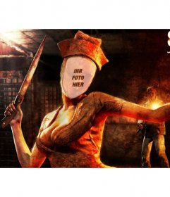 -Effekt für die Fans des Spiels Silent Hill, können Sie mit Ihrem Foto zu verändern und halten Sie Ihr Gesicht in einer Zombie-Krankenschwester mit einem Messer und erschrecken Sie Ihre Freunde mit dem Online-Effekt, dass es auch perfekt auf halloween zu tragen. Fügen Sie einen Filter, um das Bild und zu einem Zeichen des Grauens.