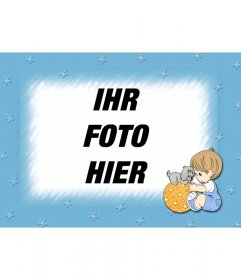 blau fotorahmen die den rand des bildes verwischt im vordergrund ein kind mit einem ball spielen auf dem ein welpe montiert