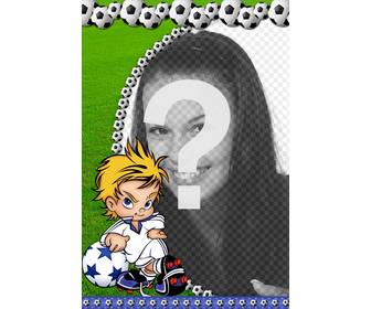 fotorahmen fußballe fur ihre fotografie ein kind erscheint großspurig spieler mit haltung und das grune gras hintergrund