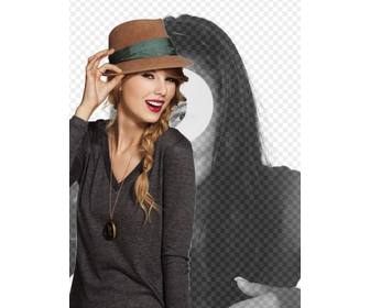 fotomontage mit taylor swift in dem sie mit der sangerin tragt einen hut und roten lippen erscheinen