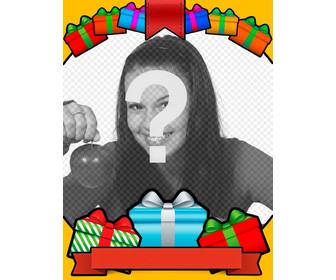 Alles Gute zum Geburtstag zu Ihrem Familienmitglied oder einen Freund mit diesem Fotorahmen mit Geschenken in vielen Farben und einem gelben Hintergrund. Können Sie Text zu setzen!