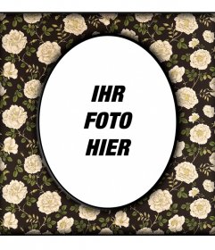 Weinlese ovale Bilderrahmen mit Blumen auf beige in schwarze Wand, wo Sie ein digitales Foto hochladen können