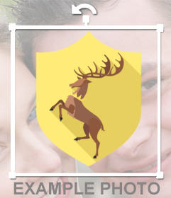 Dekorativen Aufkleber hinzufügen auf Ihren Bildern den Schirm des Baratheon Haus von Game of Thrones Serie einzufügen, laden Sie Ihr Foto kostenlos zu dieser Effekt, wenn Sie dieses Haus unterstützen und in Ihrem sozialen teilen Netzwerke.