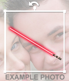 Setzen Sie Ihre Aufkleber von einem roten sable mit Ihrem Foto und Sie werden Darth Vader geworden oder Count Dooku.