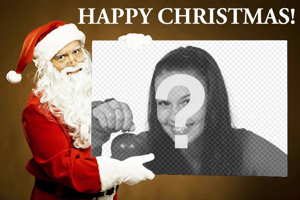 Feiern Sie Weihnachten mit diesen lustigen Fotomontagen von Santa Claus. Sie können alle Weihnachtsrahmen wählen, die Sie wollen, sie sind frei und sehr einfach zu machen. Darüber hinaus können Sie sie auch online in Ihren sozialen Netzwerken teilen oder per E-Mail senden. Feiern Sie Weihnachten, indem Sie ein oder mehrere Fotos zu den verschiedenen Fotomontagen von Santa Claus hinzufügen. Es gibt eine große Vielfalt: von der Weihnachtsmannmontage mit seinem Rentier und Schlitten bis hin zu Bilderrahmen mit dem Weihnachtsmann. Wähle die, die dir am besten gefallen, sie sind kostenlos und sehr einfach zu erledigen!